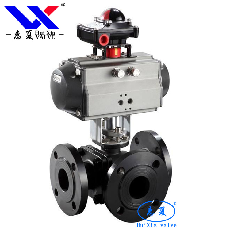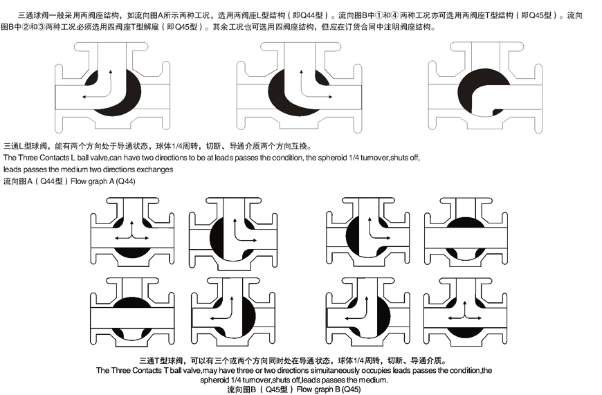 5、氣動三通球閥、三通球閥在結構上采用一體化結構,4面閥座的密封型式,法蘭聯接少,可靠性高,設計實現了輕量化。