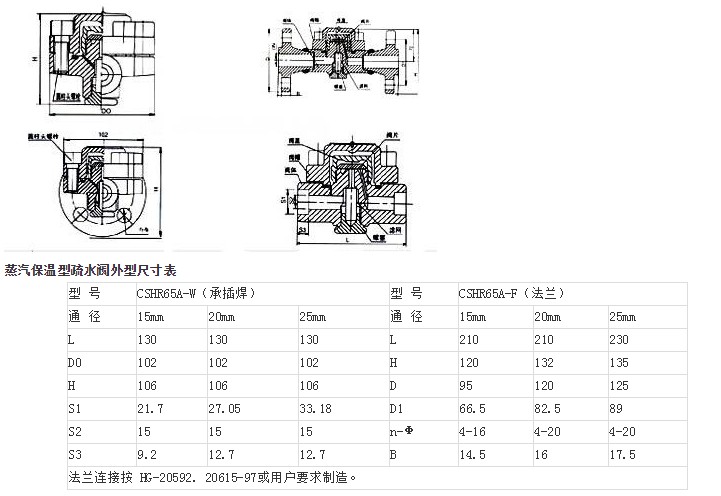 本疏水閥的汽室外面增加一層外殼,外殼內室和蒸汽管道相通,利用管道自身蒸汽對疏水閥的主汽室進行保溫,使主汽室的溫度不易降溫,保持汽壓,疏水閥緊緊關閉。當管線產生凝結水,疏水閥外殼降溫,疏水閥才能開啟排水;在過熱蒸汽管線上如果沒有凝結水產生,疏水閥不會開啟,工作質量高,節能效果好。該閥最高允許溫度為550℃,閥體為合金鋼,閥心為硬質合金,經久耐用,使用壽命長,是高壓.高溫過熱蒸汽專用疏水閥。