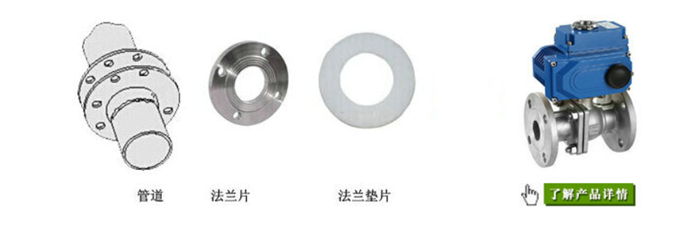 4、把閥裝上管道。本類閥可以放置于管道的任何位置和方向。兩頭先各自固定在一個法蘭片上,然后在兩頭法蘭盤片之間加上法蘭墊片,固定好。放置的順序如下圖: